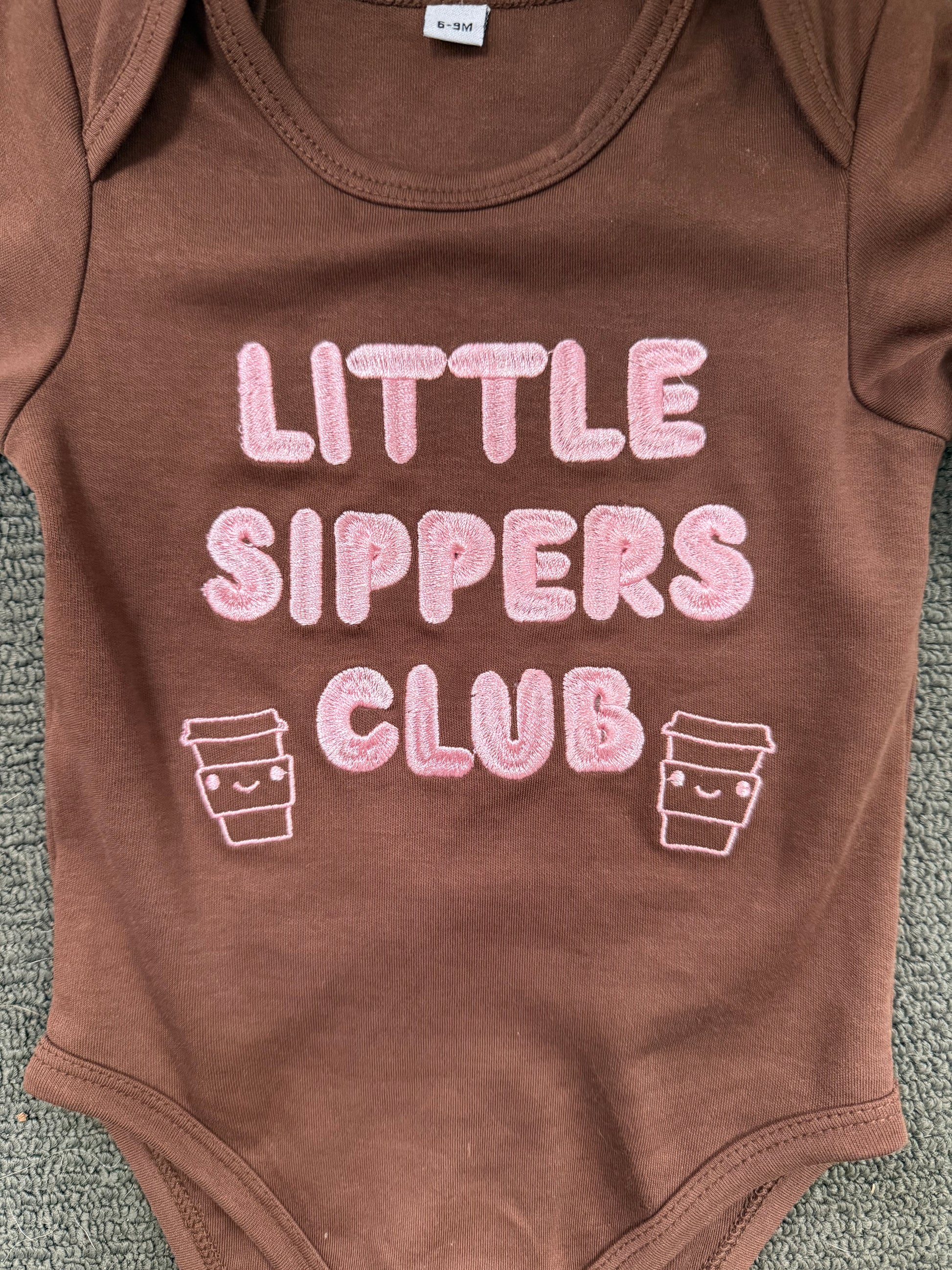 ☕ “Little Sippers Club” design is done in a print, so that no embroidery has a chance to scratch their little bodies